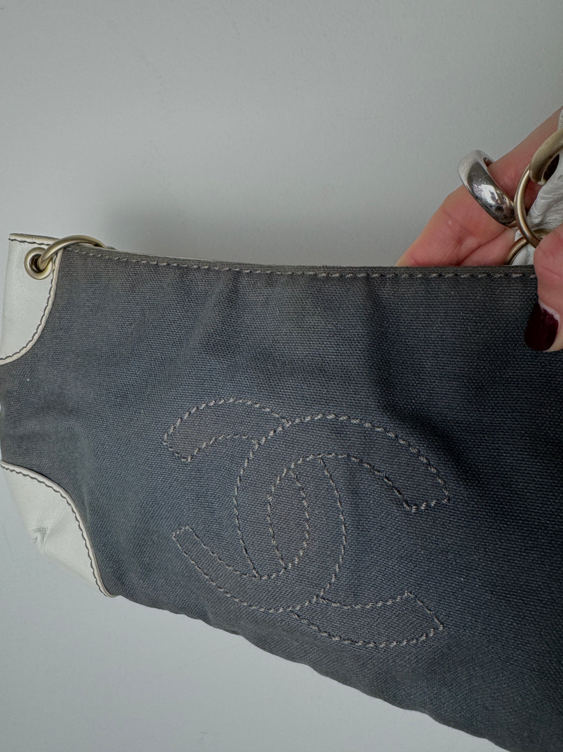 This piece sits in that very interesting 90s Karl moment. When Chanel was experimenting with more relaxed, almost sporty silhouettes while still keeping strong house codes. Canvas bags with oversized stitched logos became part of the brand’s off-duty identity during that time.