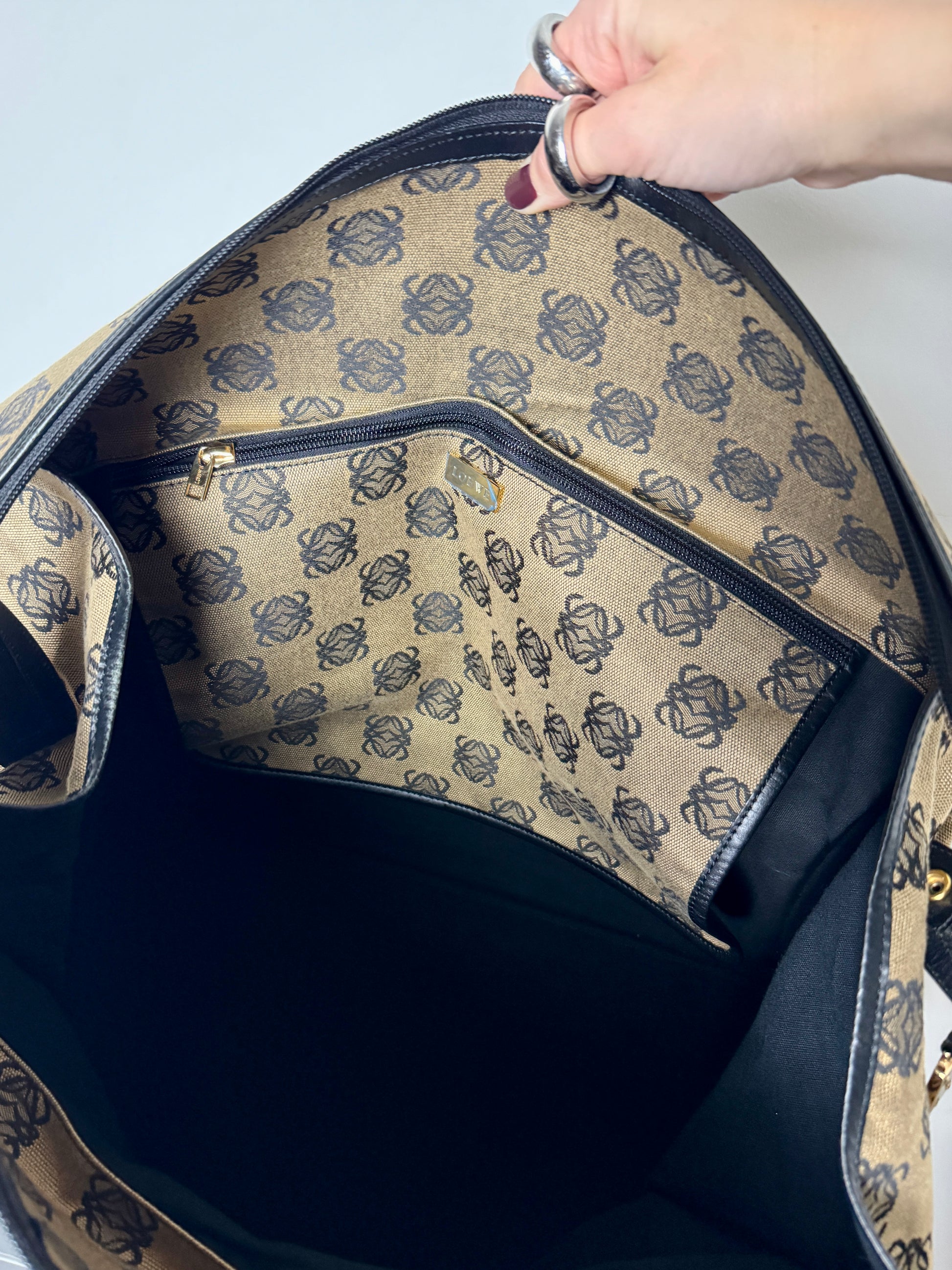 Interior zip pocket with Loewe metal plaque