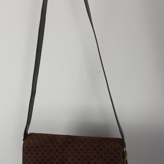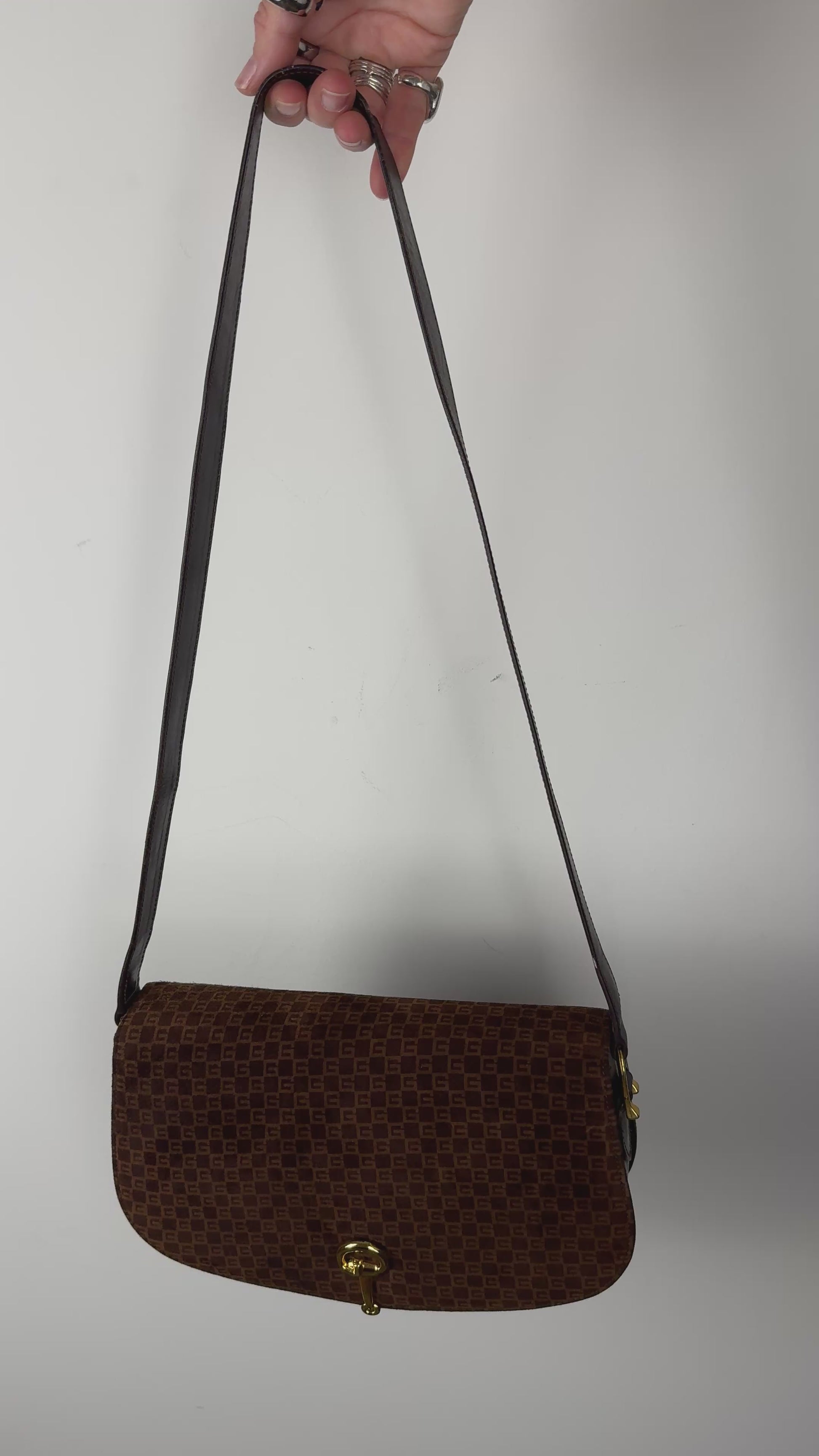 Gucci Brown Suede Monogram Shoulder Bag — Late 1970s