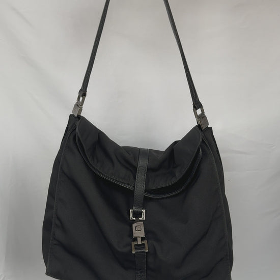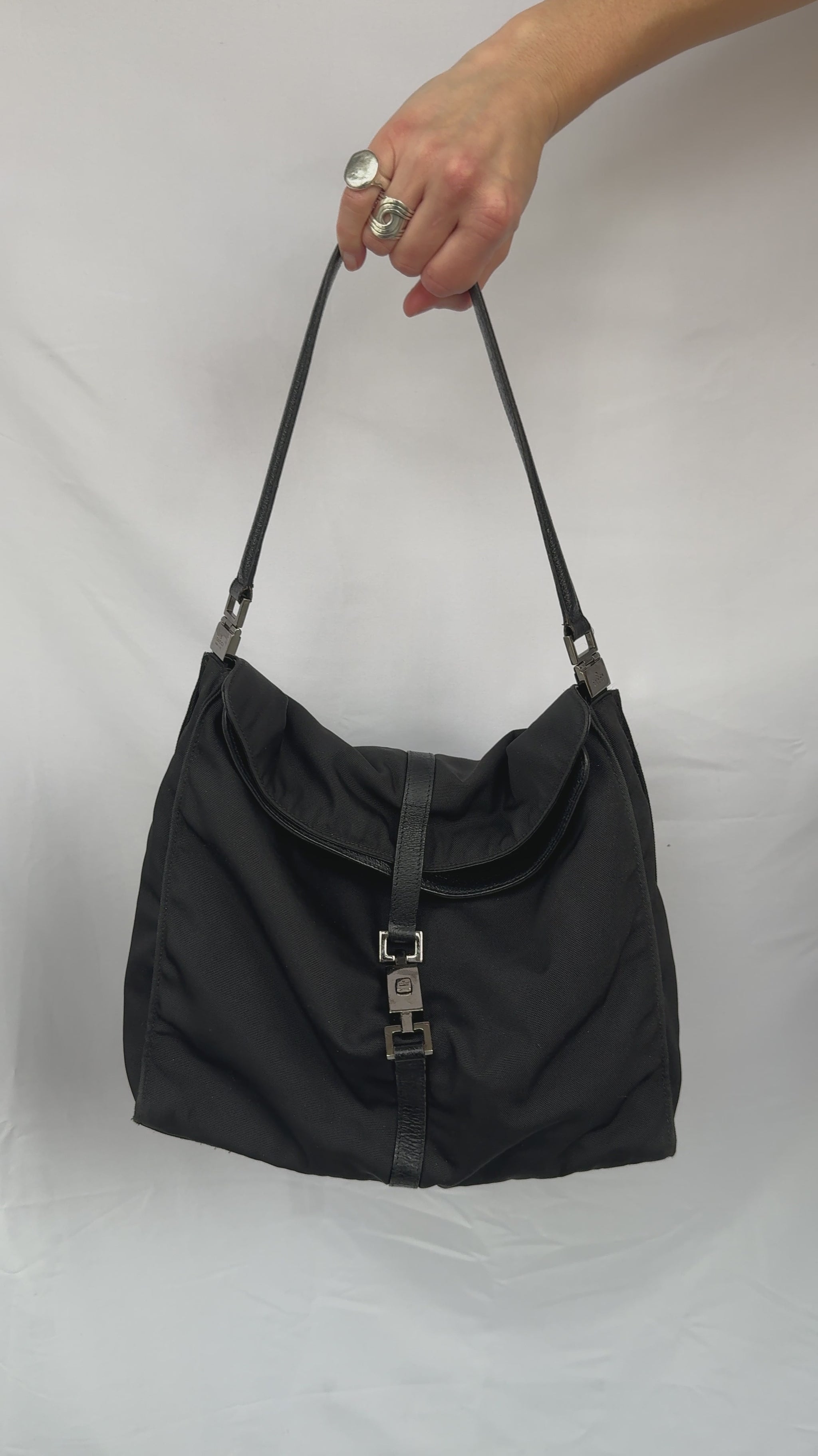 Gucci Jackie Black Nylon Bag with Leather Strap — Early 2000s