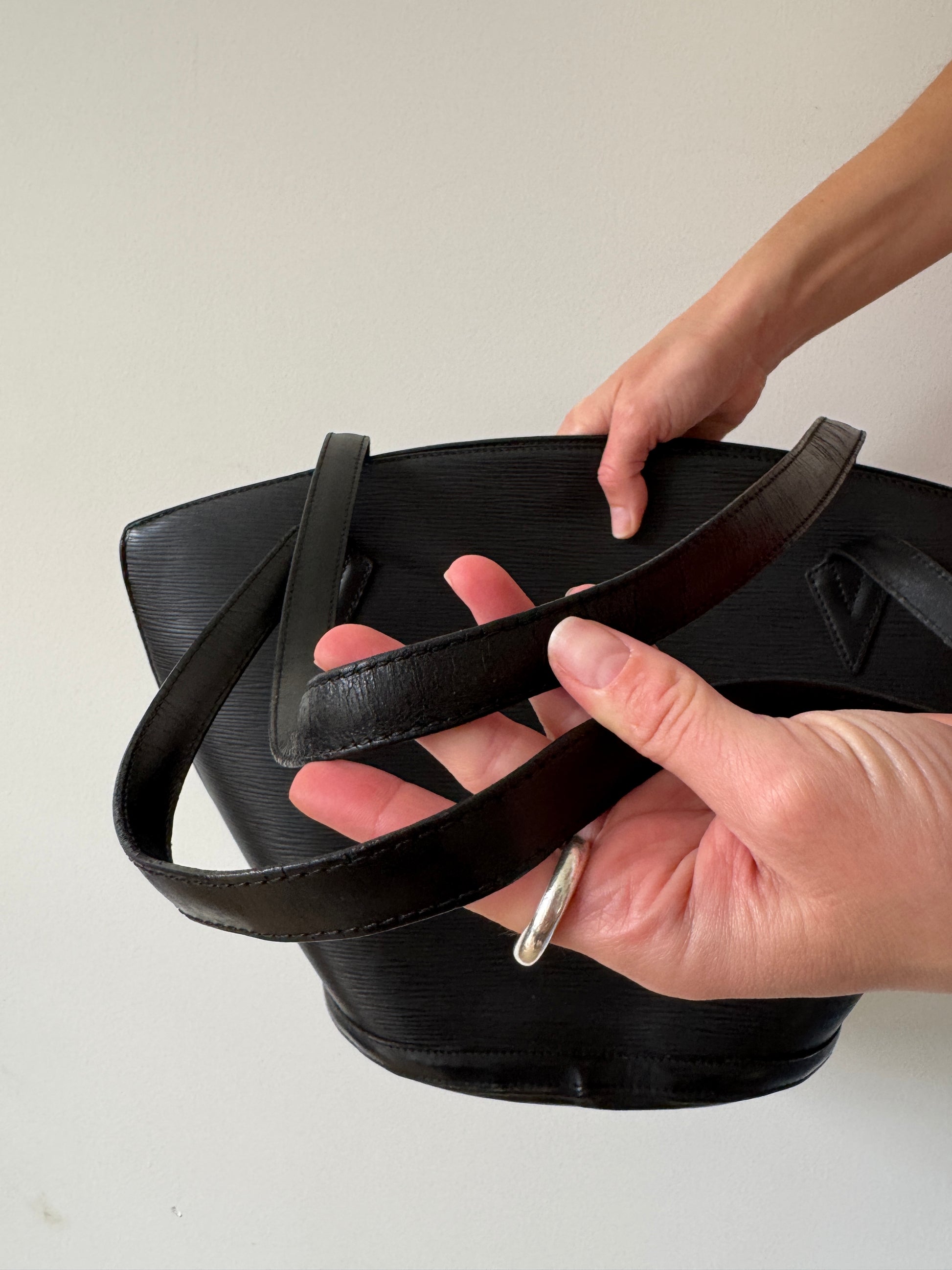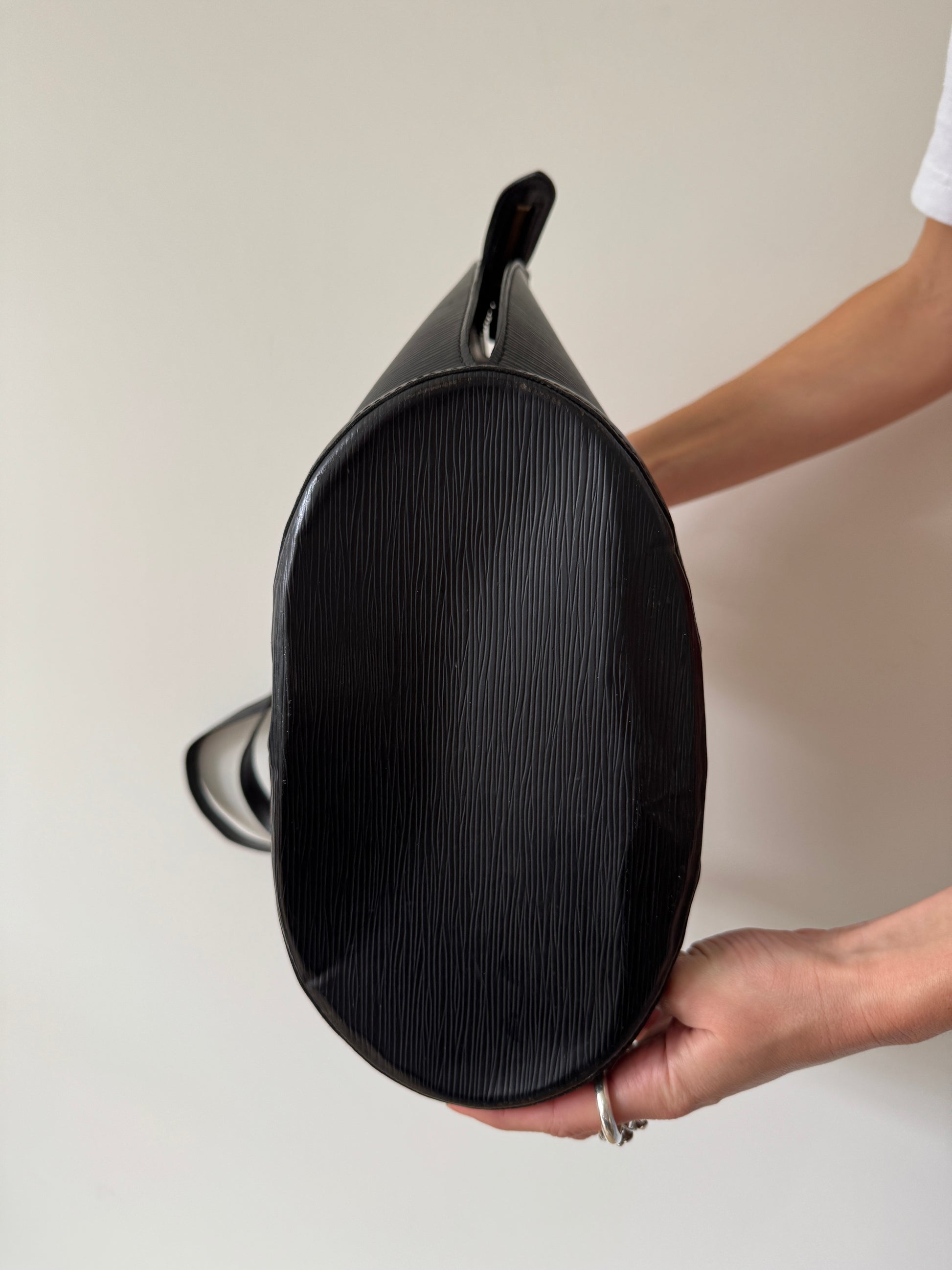A sculptural everyday bag crafted in Louis Vuitton’s signature Epi leather. Structured and quietly embossed with the LV monogram at the base. The Saint Jacques design is known for its tulip-shaped silhouette, a perfect balance between architectural and feminine.