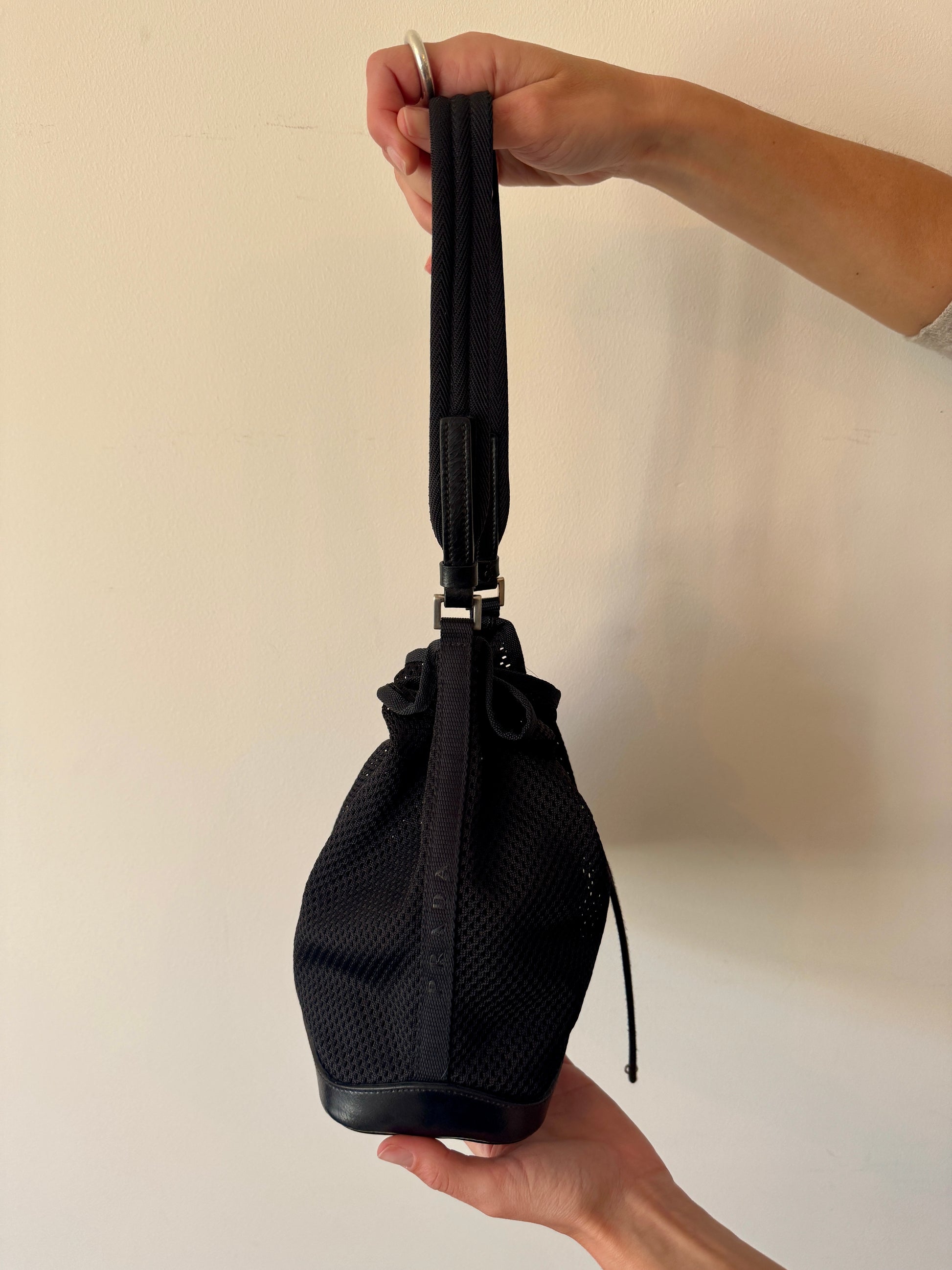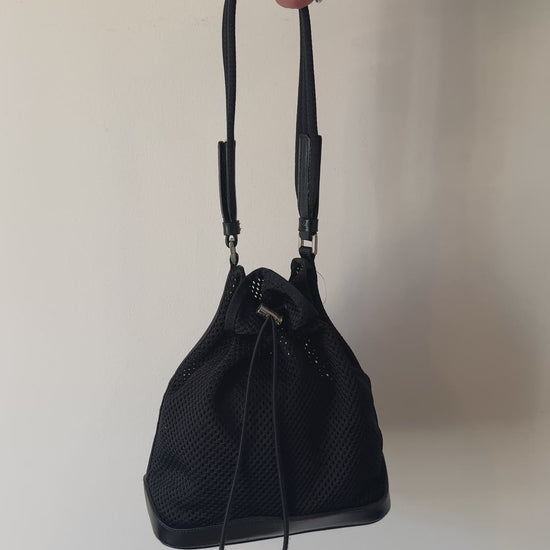 Prada Black Mesh Bucket Bag with Leather Trim